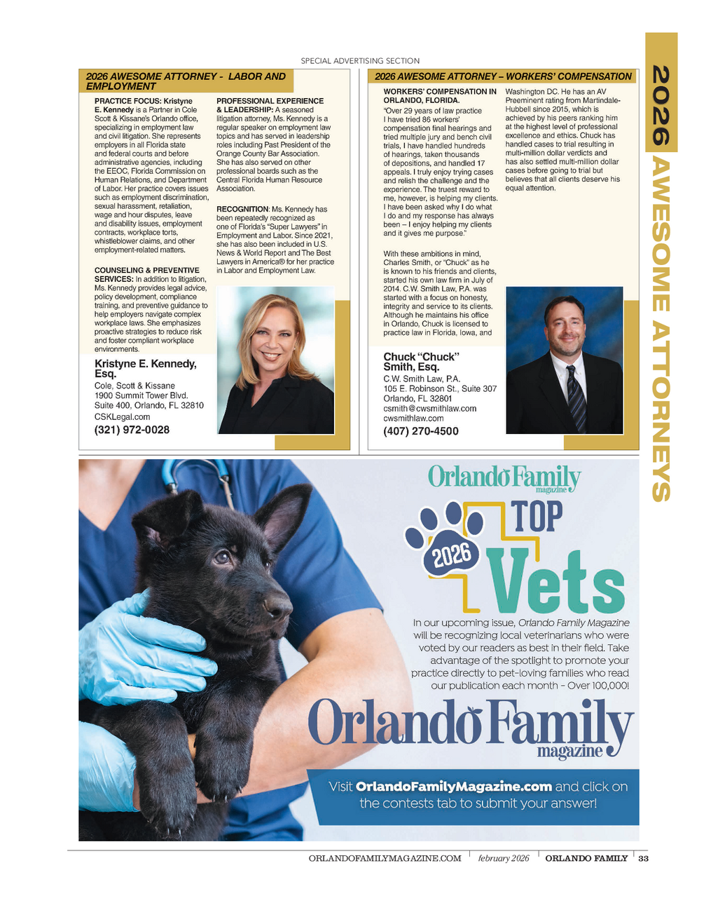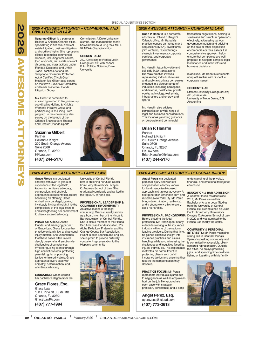 OFM_AwesomeAttornerys_SAS_2_26_CEN.qxp_SAS 1 / 19 / 26 1 : 27 PM Page 4 SPECIAL ADVERTISING SECTION2026 AWESOME ATTORNEYS 32 ORLANDO FAMILY february 2026 ORLANDOFAMILYMAGAZINE.COM